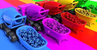 Learn colors with cement mixer trucks and balloons